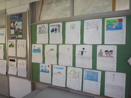 各教室の前に、夏休みの作品の数々が展示されました。工夫した工作、可愛い絵日記、旅行記、歴史調べ等々、力作ぞろいです。先週の前半は、毎日大きな紙袋や、ダンボールを大切そうに抱えてくる子がたくさんいました。これから一つ一つじっくりとみさせてもらいます。よくがんばりましたね!