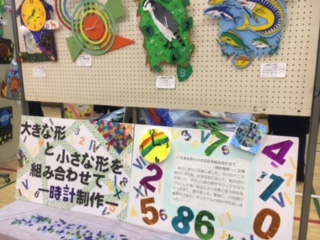 5年生展覧会作品紹介第一弾 公開日 2018/02/09 更新日 2018/02/09 学年 展覧会1日目。図工の平面作品は「雨傘ファンタジー」と「11歳の自分」です。雨傘ファンタジーの見どころは大きな傘のデッサンと、綺麗な配色です。11歳の自分では、5年生である今の自分を表すパーツを1つ1つ描き、画面構成を考えながらそのパーツを貼り合わせました。立体作品「大きな形と小さな形を組み合わせて〜時計制作〜」では、糸のこぎりに挑戦しました。大小のベニア板を好きな形に切って組み合わせました。