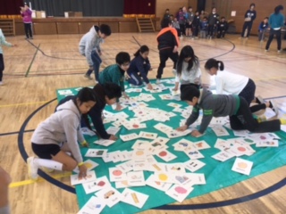 英語支援員の皆さんがファンデーを開いてくださいました。今年度最後のファンデーは、クラス対抗で楽しみました。個人戦マルバツクイズやリレー、カード集めをしました。優勝は1,4組。3位は2,3組。勝敗にかかわらず、みんなとても楽しそうでした。ご準備から本当にありがとうございました。