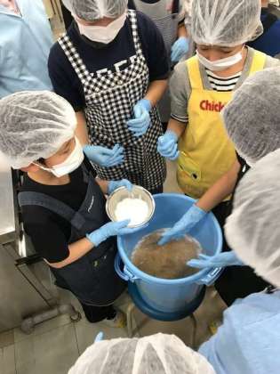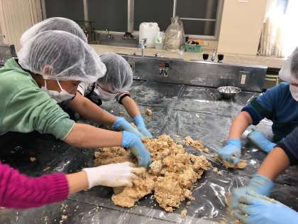 2/20 4年 食育「大豆パワー」〜みそづくり2〜 公開日 2018/02/21 更新日 2018/02/21 学年 ☆続き☆ みそ作りでは、蒸した大豆をつぶしていきました。 つぶした大豆に米こうじ、塩を混ぜまたよく混ぜます。 そしてみそ玉をつくり、バケツに詰めていきました。 最後に化粧塩を振り、完成です。約3カ月後、自分たちの作ったみそを食べるのが今から楽しみです。