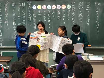 発表が終わってから自分たちの発表や他のグループの発表を振り返ることができました。5年生に向けて、人の前で発表する力を高めていきたいと思います。