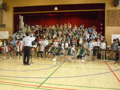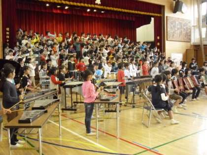 今日は、4年生音楽集会の練習が体育館でありました。本番は明日行われますが、私は6年生の連合運動会に出かけてしまいますので、今日の練習を見せてもらいました。