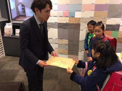 2学期に行った町たんけんのお礼状を届けに