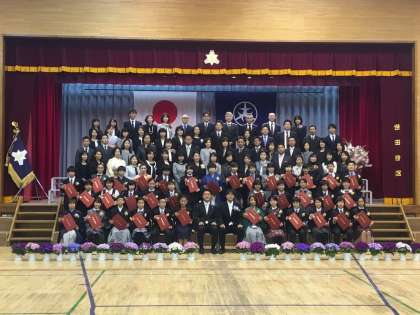 5年生は朝早くから登校し、6年生の教室にきて胸花をつけてくれたり、会場準備に片付けと式中はもちろん強力にサポートをしてくれました。4月からは6年生。そのためにステップをしっかり上ることが出来ました。