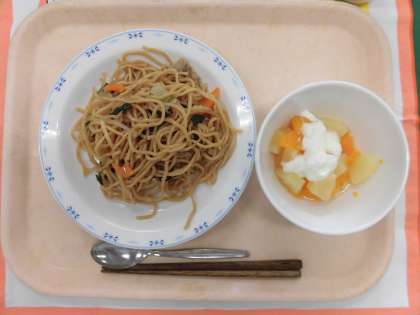 今日の給食は、「塩焼きそば」です。給食の焼きそばには、野菜がたくさん入っているので、栄養満点です。そこで今日は、「野菜」のクイズを出したいと思います。野菜は、1日にどれくらい食べるとよいと言われているでしょうか?