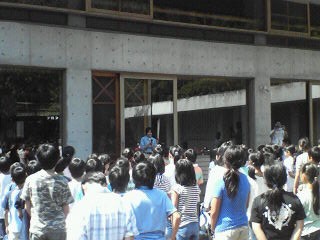 9/10 川場移動教室 4 公開日 2008/09/10 更新日 2008/09/10 学年 おいしいお弁当を食べ終えた後は、開室式です。 いよいよ川場での生活の始まりです。 午後は、農作業体験の予定です。