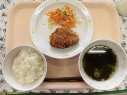 今日のメンチカツは、今が旬の魚「飛び魚」を使った「飛び魚のメンチカツ」です。そこで今日は、「飛び魚」のクイズを出したいと思います。今日の給食で使った「飛び魚」は、どこでとれたものでしょうか?