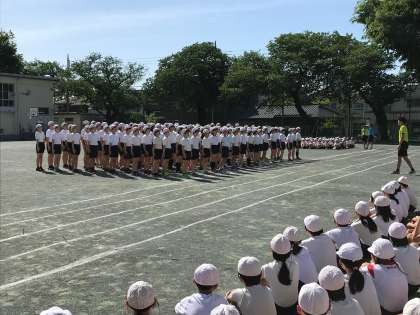 その後、各学年が「前へならえ」「気をつけ」「休め」を中心に全校児童の前でチャレンジしました。6年生の動きを見た後ということあり、動きに素早さが増した様子でした。体育の学習はもちろん、避難訓練や大勢で行動するときに今日の学びが活きるといいと思います。