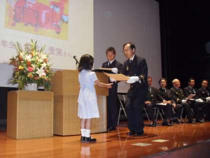 はたらく消防の写生会 表彰式 公開日 2010/11/03 更新日 2010/11/03 校長室より 今日は「はたらく消防の写生会」の表彰式が駒澤大学深沢校舎でありました。本校からは最優秀賞を含め、17名もの子どもたちが入選し表彰をされました。玉川消防署長さんから賞状をいただくときに、「はい!」という、とても大きなよい返事が出ていたのでとても嬉しくなりました。どの絵も消防車をしっかりと見て描かれており力作ばかりです。次の全校朝会で表彰します。