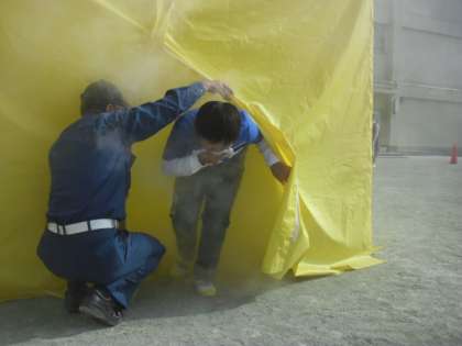 5年生は避難訓練の後に、煙体験を行いました。煙の中はまわりが全く見えません。手探りで姿勢を低くして、歩きながら出口までなんとか歩いていました。玉川消防署の方々のご協力に感謝いたします。
