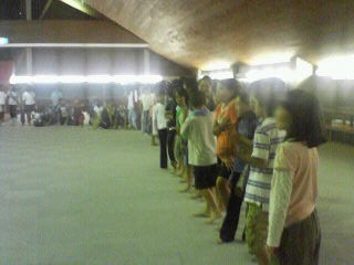 川場最後の夜は、ビレジの広い「村の会堂」で室内レクリエーション大会を行ないました。「お誕生日ゲーム」では、一言もおしゃべりをしないで、誕生日順に並びます。子どもたちの目は真剣そのものでした。