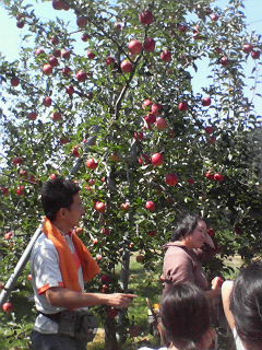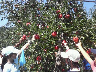 楽しみにしていたりんご狩り、りんごが真っ赤に実っておいしそうです。 おうちにもお土産にもって帰ります。