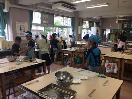 グループの友達と協力しながら準備、調理、片付けをしました。