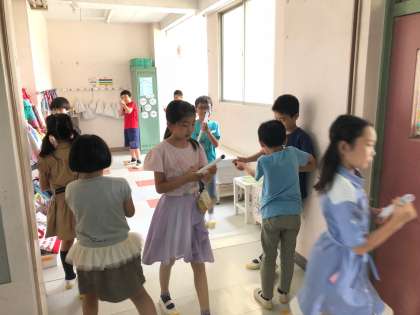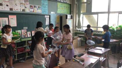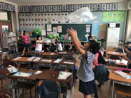 「空気と水」の学習の導入で空気を閉じこめてたくさん遊びました。