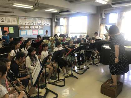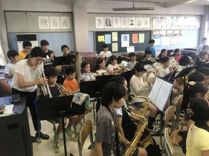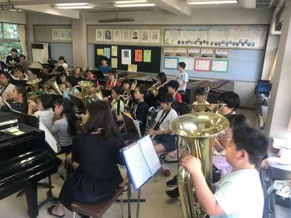 6/8 キッズバンド 公開日 2018/06/07 更新日 2018/06/07 学年 朝練習に加え、木曜日は午後練習の日。 運動会を終え、次の目標はやぐらの盆踊り大会の日! 「銀河鉄道」のリズミカルな音楽が、音楽室いっぱいに響き渡りました。5・6年生が4年生に優しく教える姿がすてきです。
