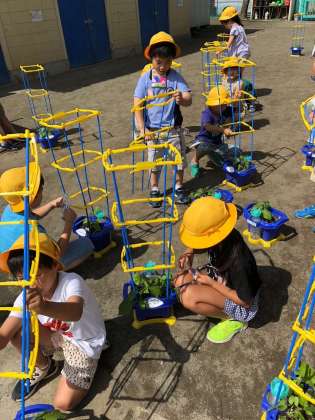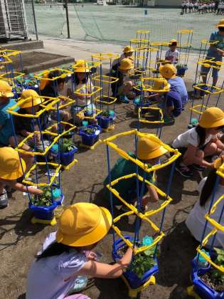 6/8 1年 生活科 〜朝顔の支柱取り付け〜