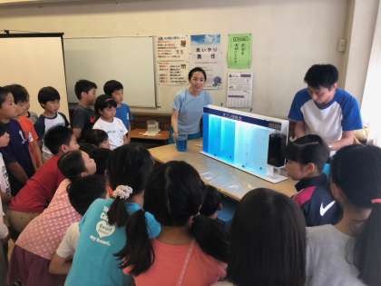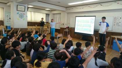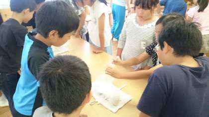 6/11 4年生 社会科「水道キャラバン」 公開日 2018/06/12 更新日 2018/06/12 学年 社会科「くらしをささえる水」の学習のまとめとして、今日は東京都水道局の方に来ていただき、水道キャラバンを行いました。水道水源林からの水の行方を確認したり、上水処理の実験を行ったりしたことでより理解が深まりました。 水道メッセンジャーに任命された子ども達。限りある水を大切にしていこうと決意を新たにしていました。 ※写真の転用は、ご遠慮ください。