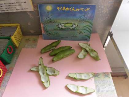 そらまめくんのさや、今週末まで給食室前に置いていただけるそうです。ぜひ、一度ご覧ください。