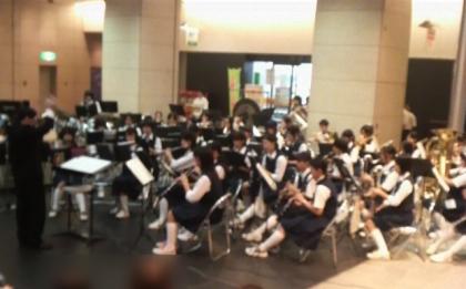 9月13日(土)用賀駅ビルの地下にて、今年で10回目となる青空コンサートが開催されました。出演は用賀中学校ブラスバンド部です。曲目は、上映中の「崖の上のポニョ」から、コンクールへ向けて取り組んだ「天馬の道」まで、多彩なプログラムでした。吹き抜け部分になっている会場は満員で、通りがかりの人も足を止めてきいていました。聴く人を構えさせないあたたかい雰囲気が漂い、演奏はさすが中学生の素晴らしものでした。