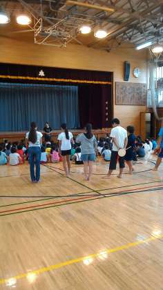 2週間ぶりのエイサー、体育館には活気のあるヘーシが響いていましたね。今日の練習では「七月エイサー待ちかんてぃ」を行いました。
