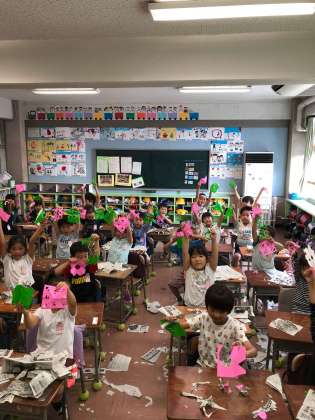6/21 1年 図工 「チョッキン パッで かざろう」1