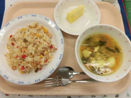 今日は、ナシゴレンのクイズを出したいと思います。ナシゴレンは、インドネシアという国の料理です。インドネシアの言葉で、ナシはごはんという意味ですが、ゴレンは何という意味でしょうか?