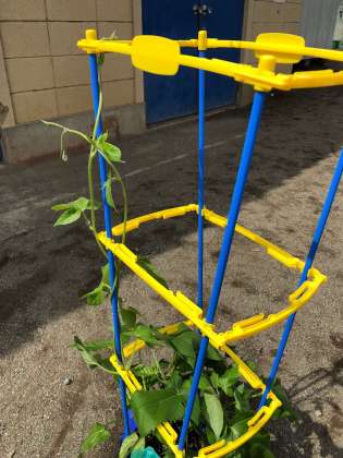 今日の観察では、支柱に絡む蔓を中心に観察しました。先日立てた支柱を伝いながら大きくなっている朝顔、もう開花もすぐそこ。蕾がついている鉢や、なんともう花が咲いている鉢も!?