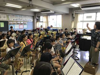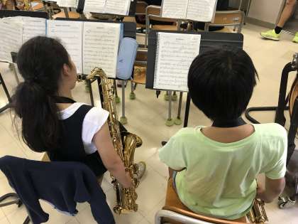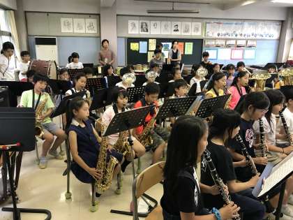6/29 キッズバンド 公開日 2018/06/28 更新日 2018/06/28 学年 木曜日の午後練習では、学年をこえて教え合う姿がたくさん見られました。パート練習では楽器の指使いやリズムの取り方など声をかけあい練習していました。 今日は新曲も披露され、これからの練習が楽しみになりました。