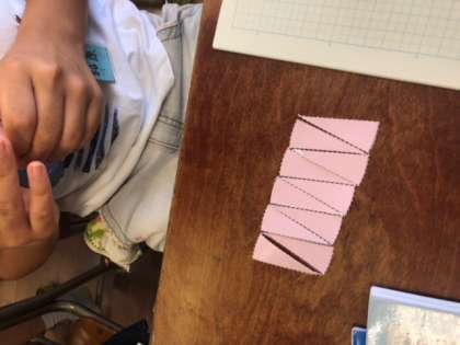 今日は、円の面積を求めるために円を細かく分けて、