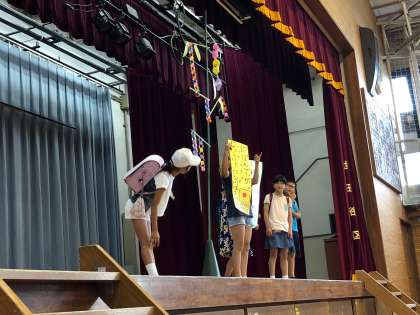 7/5 七夕集会 公開日 2018/07/06 更新日 2018/07/06 学年 体育館にて、七夕集会が行われました。 集会委員会が企画した劇やクイズで七夕への理解を深めました。 2020年の東京オリンピックパラリンピックに向け、外国の方に行事の説明をしたり、日本の伝統行事についての理解を深めたりするきっかけになればと思います。 集会の最後には各クラスの代表者がクラスの願いごとを発表しました。 七夕まであと2日、みんなの願いがかなうといいですね。