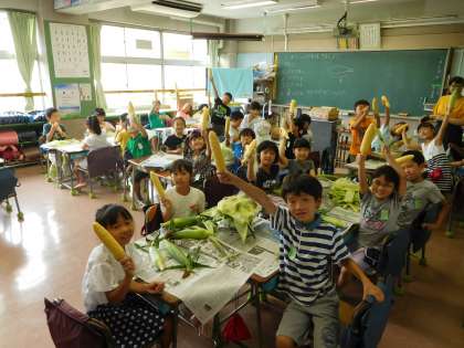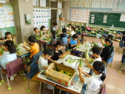 【2年】トウモロコシの皮むき