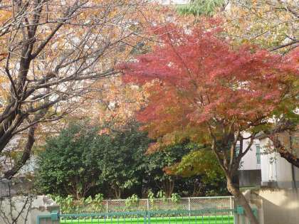 西用賀通りは、赤や黄色の桜の葉の絨毯でいっぱいですが、学校の中にも錦秋があるのを知っていますか?