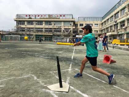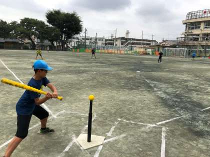 7/25 スマイルスクール「みんなで楽しく!Tボール!」 公開日 2018/07/25 更新日 2018/07/25 学年 校庭で行われたTボール。講師は4年生の山本先生でした。曇り空の中、Tバッティングと試合を行いました。ボールをよく見て、打つ。それぞれのやり方でかっ飛ばす姿がとてもかっこよかったです。 試合形式になると、「ここに打とう」「守備位置を確認しよう」など、それぞれ声をかけ合いながら楽しみました。 お手伝いいただいた保護者のみなさま、山本先生、ありがとうございました☆