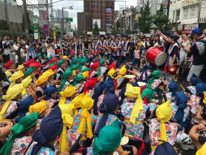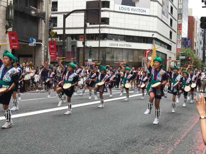2回目、伊勢丹前での演舞もバッチリ!かっこよく一つ一つの動きが決まりました☆パーランクや大太鼓に付けていたビニールも外すことができ、力強い音!声!新宿の町いっぱいに響かせることができました。