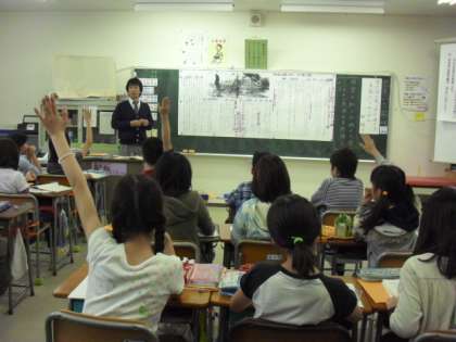 昨日、今年度第3回ようがの学び舎授業研究会が京西小学校で行われました。「学び合い、高め合う、ようがの学び舎」をテーマに京西小学校からの提案授業です。1・3・5年生が国語、2・4・6年生が算数、そして専科グループが図工と全部で9教室で授業が展開されました。どのグループも「学び舎スタンダード」という学習・生活の基本的なマナーをしっかり押さえての授業提案です。子どもたちの授業に臨む姿勢、学ぶ姿勢がとてもよく、ようがの学び舎としての成長が感じられ嬉しく思いました。