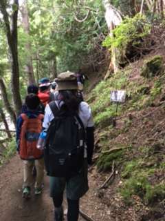 木々が生い茂るふかふかな道を歩く子どもたち。心が落ち着くようで、とてもすがすがしい表情でもくもくと進んで行きます。