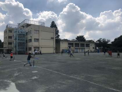 打ち方のコツを教わり、練習をしてから試合を行いました。