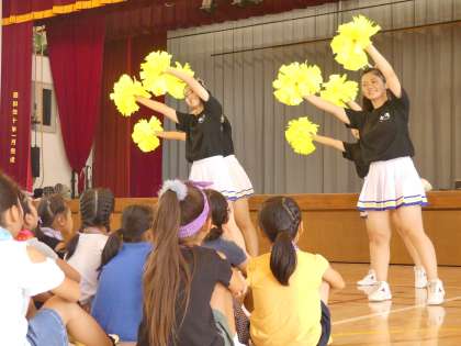 駒澤大学高等学校チアリーディング部『CIPHER(サイファー)』の土田絵美先生・杉村暁美先生と部員のみなさんが、チアリーディングを教えにきてくれました。