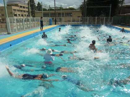 本日は、夏期水泳指導前期の最終日でした。6年生は、昨日まで日光林間学園でした。疲れもあったかと思いますが、今日もたくさんの6年生が参加していました。心も体も一回り大きくなった6年生、その姿がとても立派でした。