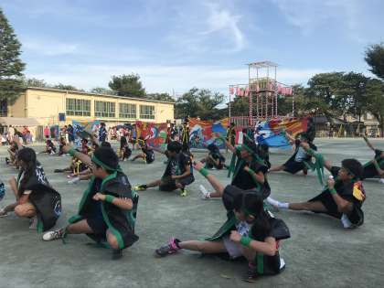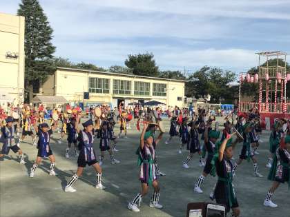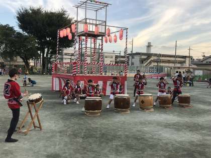8/18 上用賀盆踊り その1 公開日 2018/08/18 更新日 2018/08/18 学年 お祭り2日目です。 今日も元気いっぱいな声が用賀小学校に響いています。 今日の盆踊り前の出し物は、新宿エイサー、5年生の南中ソーラン、大蔵天空太鼓です。新宿エイサーは子供達と先生、そして今日はお家の方々も一緒に踊りました。5年生も大勢が参加し、迫力のある演技となりました。そして大蔵天空太鼓の皆さんは、櫓の一番上で盆踊りの間中、力強い音を響かせてくれています。
