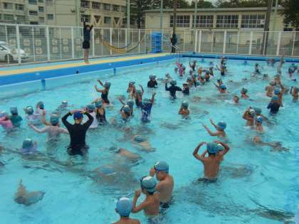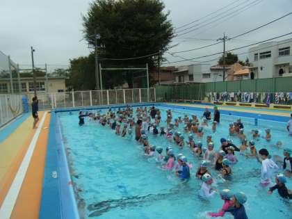 低学年のプールでは、先生の動きを真似して、水慣れをしました。「こんなこと、こんなことできますか!」と聞かれると、体を目一杯使って、真似していました。また課題別水泳になると、自分の級で泳力を高めました。夏のプールの始まりは、顔を水につけることを怖がっていた子も、力の抜けたきれいなけのびをできるようになりました。また、25メートルをクロールや平泳ぎで泳げるようになった子もたくさんいます。