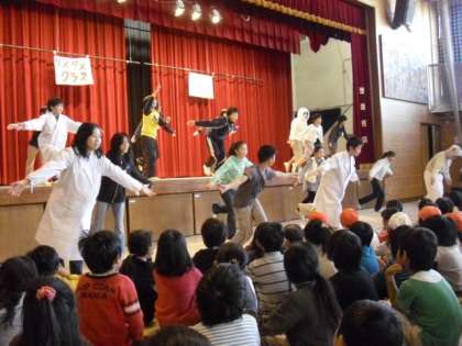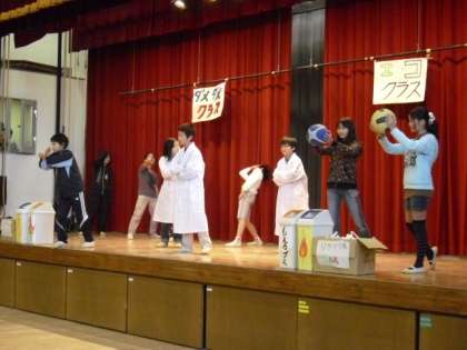 今日の児童集会は環境委員会の発表です。地球温暖化防止に向けて、ごみの分別やこまめな電気の消灯など、自分たちでできることをしっかりやっていこうと、劇やクイズ、最後には表現つきの歌まで披露しながら呼びかけてくれました。学芸会後ということもあり、演技にもより一層磨きが入っていました。観ている子どもたちも大喜びでした。環境委員会の皆さんありがとう。用賀小学校を用賀エコ学校にしていきましょうね。