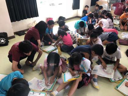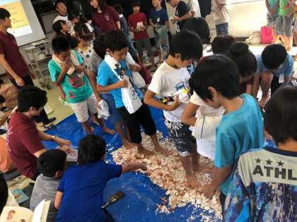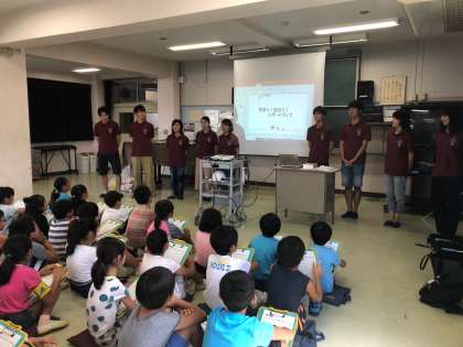 9月8日(土)に早稲田大学のWASENDの方たちを招いて、防災教育の授業をしていただきました。ハザードマップの講座では、グループごとに話し合いをして、それぞれの意見を出して学びを深めることができました。また、卵の殻の講座では、ガラスにみたてた卵の殻を実際に踏むことで、楽しみながらも改めてガラスの怖さを知ることができました。