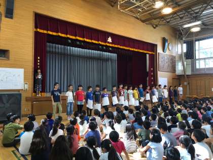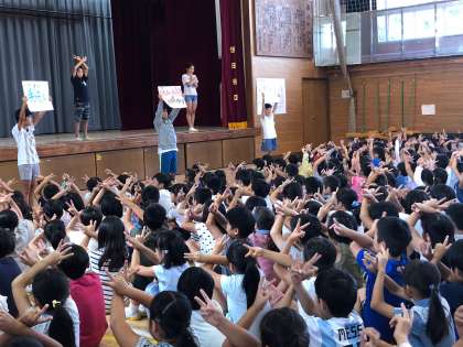 9/13 ゲーム集会 公開日 2018/09/13 更新日 2018/09/13 学年 本日、朝の時間にゲーム集会が行われました。 今回は、学校でよく流れている曲で当てるゲームでした。 答えが分かったら「最初はグー、じゃんけんぽん!」のかけ声とともに それぞれの選択肢のポーズをとります。 全校児童で大いに盛り上がりました。 前期集会委員会が企画する児童集会も今日で最後となりました。 集会の終わりには、全員で「ありがとうございました」とあいさつをしました。