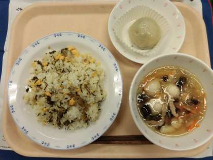 9/26 本日の給食 公開日 2018/09/26 更新日 2018/09/26 給食 〜今日の献立〜 高菜めし 牛乳 太平燕 いきなり団子 〜給食メモ〜 クイズです。今日の給食は、ある県の郷土料理です。さて、どこの郷土料理でしょうか? 1.長崎県 2.熊本県 3.鹿児島県 ※クイズのこたえは、「食材がとれたところ…」の最後にのせています。 食材がとれたところ・・・ 閉じる 食材がとれたところ… 米…埼玉県 鶏卵…青森県 豚肉…神奈川県 にんじん…北海道 たまねぎ…北海道 キャベツ…群馬県 しょうが…高知県 ねぎ…青森県 さつまいも…千葉県 クイズのこたえは、2の「熊本県」です。いきなり団子の「いきなり」には、お客さんがいきなり来てもすぐに作れるという意味があるそうです。今日の給食のいきなり団子も、調理員さんがひとつひとつ手作りしてくれました。調理員さんに感謝して、今日も残さず食べましょう。