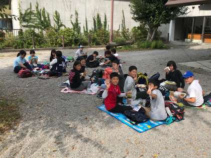 10/10 5年 川場移動教室 その2 公開日 2018/10/10 更新日 2018/10/10 学年 2時間ほどバスに乗って、群馬県川場村に到着しました!お天気も良く、自然に囲まれ実りの秋を目で耳で楽しむことができます。 少し早めに着いたので、すぐに全員で写真を撮りました。 そしてお弁当。お家の方々に用意して頂いたお昼ご飯を、東京に聞こえるくらい感謝の気持ちを込めて「いただきまーす!」と挨拶して食べました。これから宿舎に入って、生活の準備を始めます。
