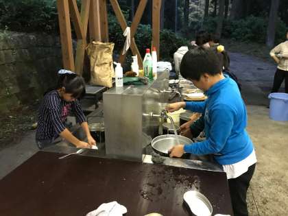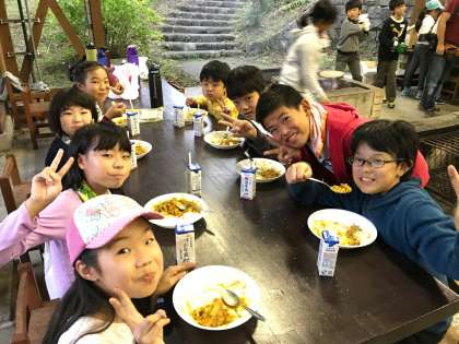 10/10 5年 川場移動教室 その5 公開日 2018/10/10 更新日 2018/10/10 学年 カレーが完成しました! 「美味しくできたよ!」「おかわりしたい!」と笑顔いっぱいです。自然の中で、自分たちで作ったカレーは特別美味しそうです。 美味しくいただいた後は、しっかりお片づけ。この時期の水道水は冷たい!けれど、ピカピカになるように最後まで片付けることができ、立派でした。 さぁ次はキャンプファイアー! 1日のしめくくり。盛り上がります!