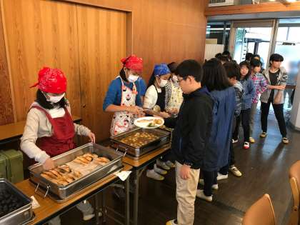 10/11 5年 川場移動教室 その1 公開日 2018/10/11 更新日 2018/10/11 学年 おはようございます! 川場移動教室2日目の始まりです。 眠い目をこすりながら、身支度を済ませ、朝の会で元気よく挨拶をしました。この三日間、班長を中心に司会進行をしています。 食堂では食事係が一足先に集合し、朝食の準備に取り組みました。美味しい食事を食べて、2日目の活動が始まります!