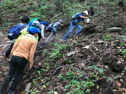 10/11 5年 川場移動教室 その3 公開日 2018/10/11 更新日 2018/10/11 学年 厳しい山道を登り切り、ようやく山頂に到着しました!「やっと着いたー!」と言う声と、ホッとした様子の子供達。 山頂に着くと雲の中。お弁当を食べ終えた頃になると、晴れて少しずつ見える川場の町並みに歓声が上がりました。