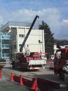 久しぶりの晴天の中、耐震工事の後片付けが急ピッチで進んでいます。仮囲いや鉄板の撤去は大変です。何しろ1枚1トンから2トンもある鉄の塊のようなものですから、大きなクレーン車で吊り上げての作業になります。危険がいっぱいの作業を慎重に進めなければなりません。